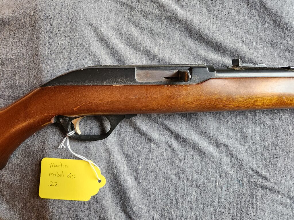 #2 – Marlin model 60, 22 LR semi-auto, tube fed, circa 1948-61, 24″ barrel, excellent condition. Bids starting at $90